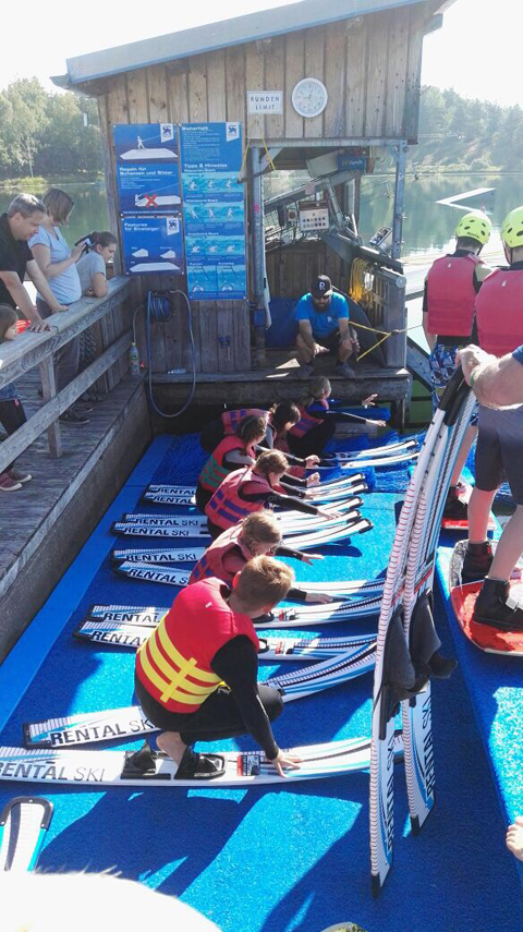 Schon um 8:00 Uhr startete der Skiclub Burglengenfeld zur Wakeboardanlage am Steinbergersee. Nach kurzer Einweisung gings dann für zwei Stunden los. Dort konnten sich die zahlreichen Teilnehmer beim Wasserski- oder Wakeboardfahren an ihre Grenzen tasten und austoben. Die kleinsten kamen beim Knieboardfahren auf ihre Kosten. Im Anschluss gings in den Wasser-Fisch-Natur-Park, beim Murnersee, dort konnten alle beim Baden in der Sonne Kräfte tanken. Von den Kleinsten bis zu den Größten hatten alle beim gemeinsamen Spielen und Plantschen riesigen Spaß. Bei der Heimfahrt würde es sehr ruhig im Bus.
